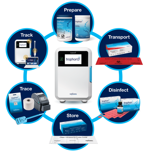 Nanosonics offers a suite of consumables and accessory products to provide end-to-end ultrasound probe reprocessing solutions that go beyond the high-level disinfection (HLD) cycle: